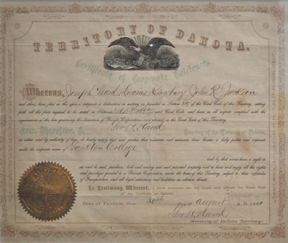 Even now, we are not willing to allow the legacy which is Yankton College to perish, as we mortals must. We have banded together and committed to one another that we will establish a legacy whereby Yankton College will outlive us and our followers. And that legacy is the Joseph and Sarah Wood Ward Alumni & Educational Center of Yankton College which is now housed on the third floor of the Mead Cultural Education Center in Yankton, South Dakota.